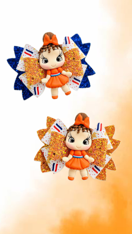 Prachtige Luxe Big Bow voor Koningsdag, de Koningsspelen en het WK met héél veel glitters, tule en een prachtige Fimo-applicatie! Steel de show met deze prachtige strik!