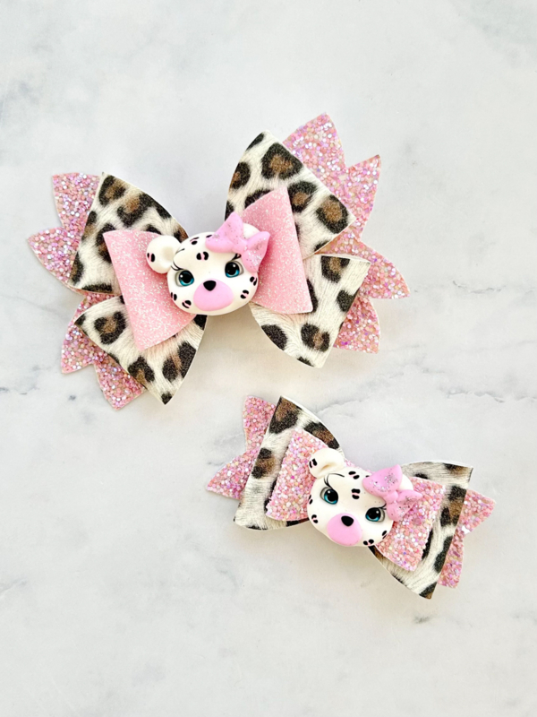 Panter BIG of groot witPrachtige Luxe Big Bow of grote strik in panterprint, met roze glitters, met lief pantertje. Voor welke strik kies jij?
